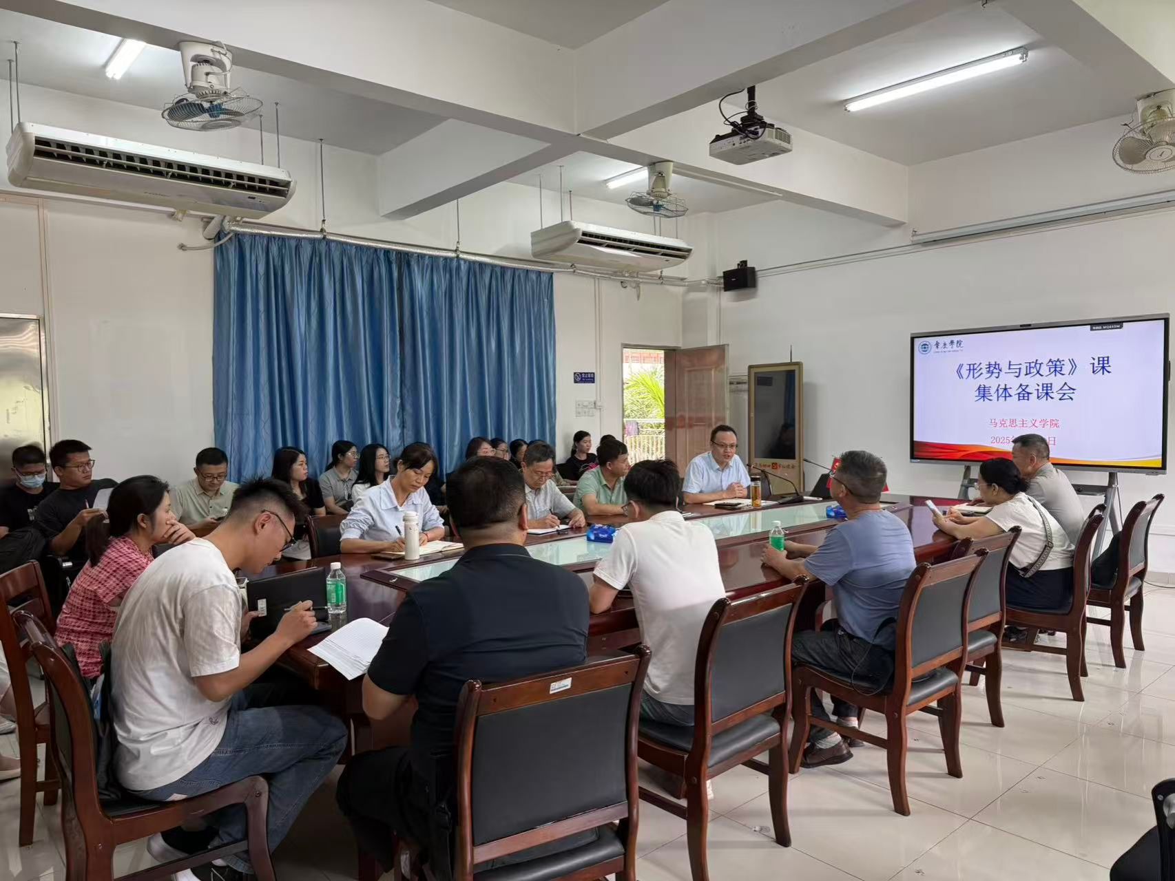 本网讯 2025年9月29日下午,马克思主义学院举办秋季学期形势与政策集体备课会,围绕纪念中国人民抗日战争暨世界反法西斯战争胜利80周年大会和践行多边主义、完善全球治理两大主题进行共同探讨,汇聚集体智慧。学院领导班子以及承担本学期形势与政策课教学任务的老师参加,副院长谢石生主持。