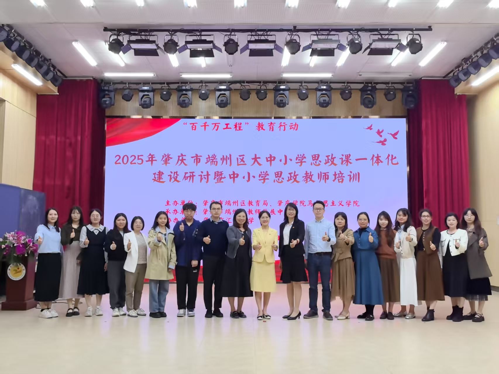 本网讯 为深入推进大中小学思政教育一体化建设,加强校地教育资源联动,提升思政教师专业素养与教学能力,2025年10月24日上午在肇庆市汇星小学景德校区,肇庆学院马克思主义学院与端州区教育局共同举办“学段衔接·素养共生——新时代大中小学思政课一体化建设实践与教师能力提升”主题交流学习活动,马克思主义学院副院长林润燕、原理教学部主任黎锐楷与24级学科教学(思政)研究生一行,端州区各中小学思政学科教师代表等共同参会。