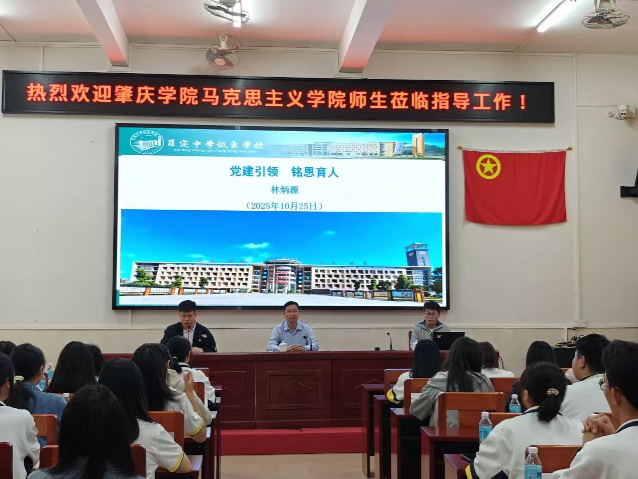 本网讯 10月25日,马克思主义学院结合学校办学55周年系列活动安排和“三所学校”帮扶工作,组织师生赴罗定中学城东学校开展调研学习。活动中,学院特邀了96届政史专业校友罗定中学城东学校党委书记林炳源与在场师生开展专题讲座和学习交流。