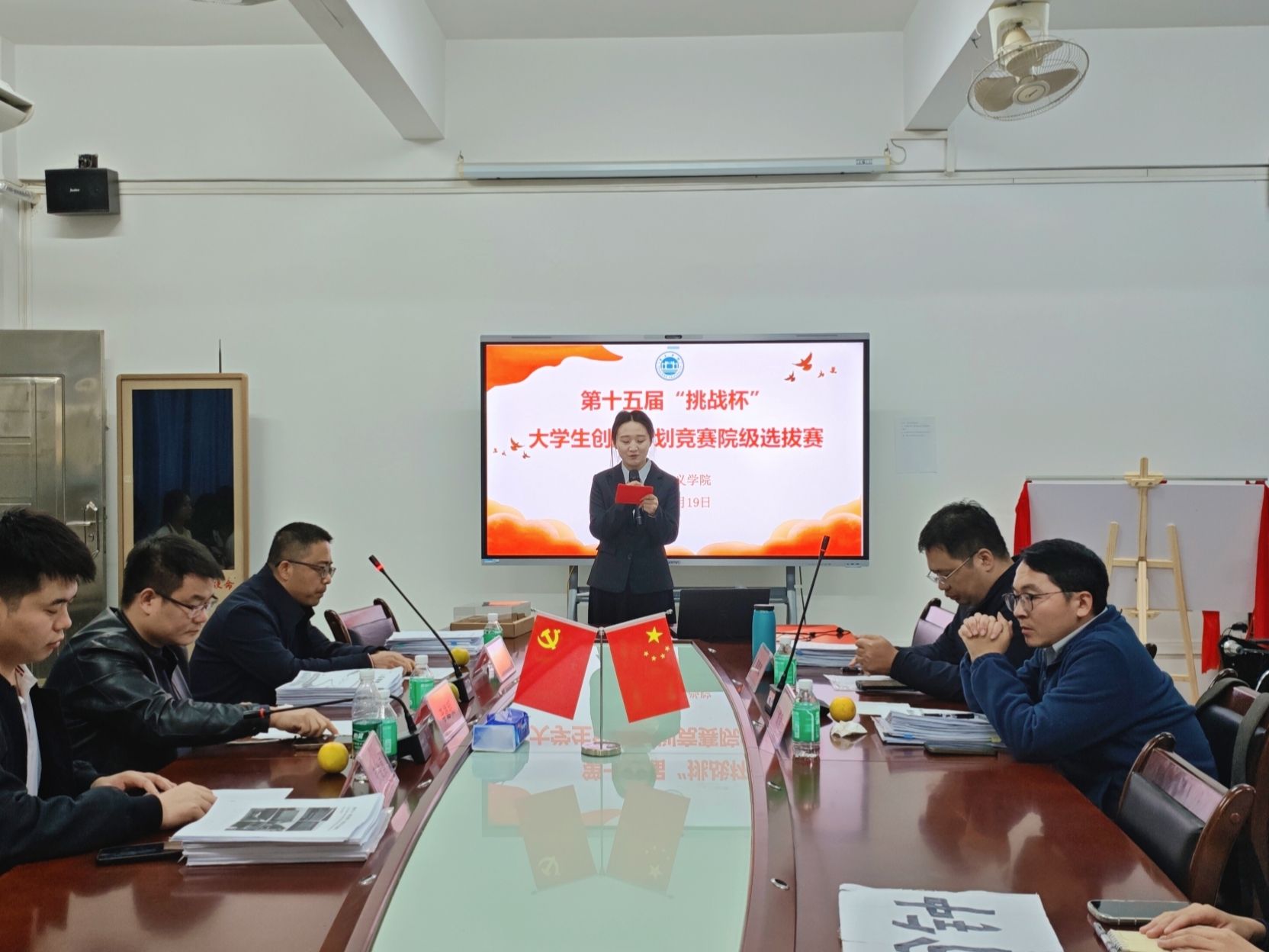 本网讯 11月19日晚,学院第十五届“挑战杯”大学生创业计划竞赛院级选拔赛在三教317会议室成功举办。本次院级选拔赛答辩会共有10支学生团队参加,学院副教授易明、思政系主任高春海、李德明、张呈和团委书记张俊勇等五位老师担任赛事评委。