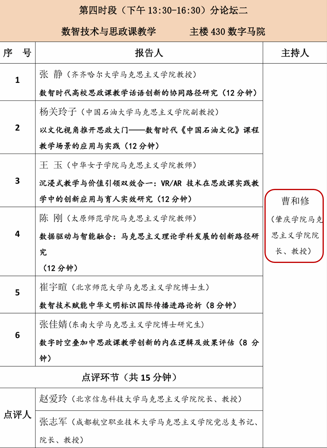 上午的总论坛上,来自全国各地的六位专家学者围绕数智技术在社会事业与思政教育领域的应用展开深入探讨,分享前沿研究成果与实践经验。我院院长曹和修教授受邀担任点评嘉宾,立足行业特色马院建设实际,针对发言中的核心观点进行精准提炼与深度解读,为相关领域的实践探索提供了新思路。