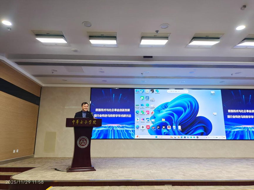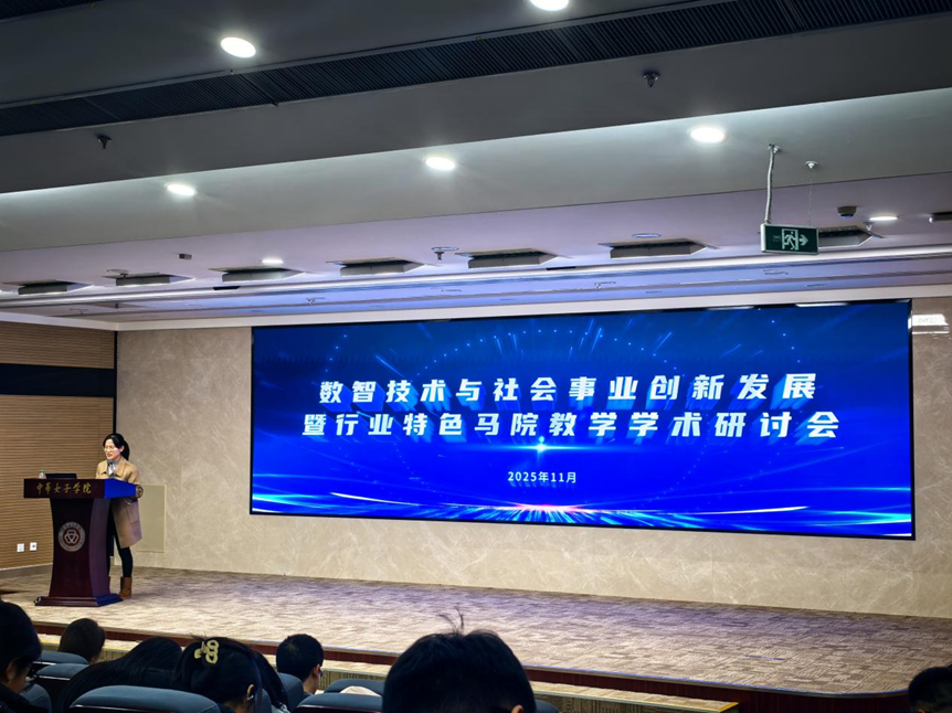 本网讯 2025年11月29日,“数智技术与社会事业创新发展暨行业特色马院教学学术研讨会”在中华女子学院成功举办。会议由我院与中国自然辩证法研究会未来哲学与发展战略专业委员会、中华女子学院(全国妇联干部培训学院)马克思主义学院及科研处(学报编辑部)、中国自然辩证法研究会思维科学与认知哲学专业委员会、中国劳动关系学院马克思主义学院、浙江海洋大学马克思主义学院、长春中医药大学马克思主义学院、成都航空职业技术大学马克思主义学院等多个单位和学院联合主办。学院院长曹和修带领学院骨干教师一行与来自全国四十多个高校、研究机构的120余位专家与硕博研究生出席会议。本次会议立足数智技术迅猛发展的时代背景,聚焦高校思政课内涵式发展核心议题,为学界搭建了跨界交流、思想碰撞的优质平台。