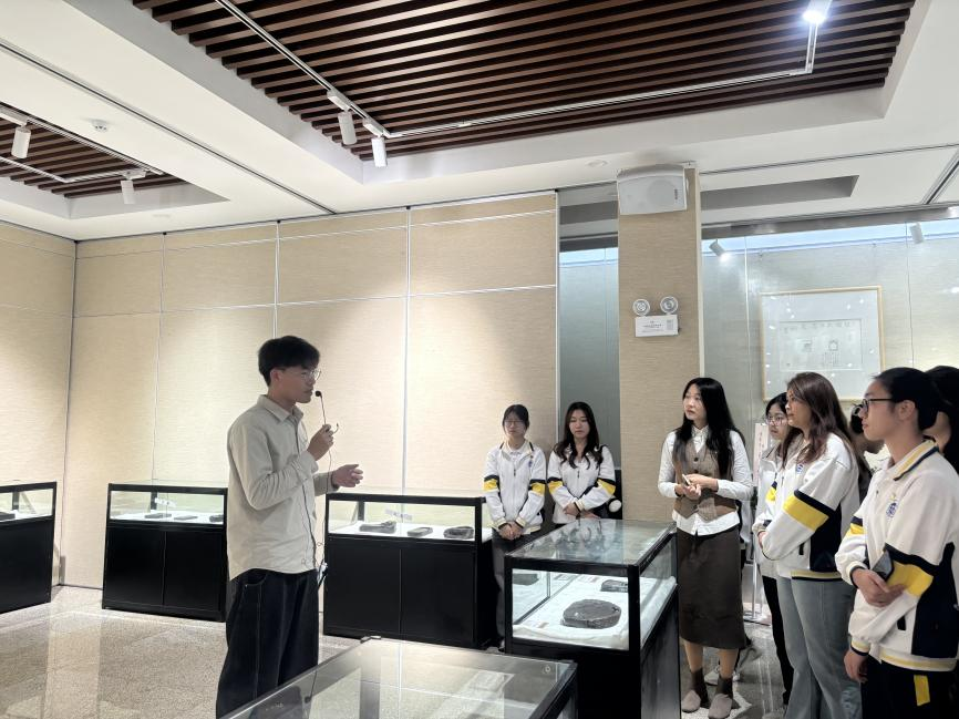 过程中,党员们循着展品脉络深入探索。大家时而驻足细赏“石眼灵动、纹理天成”的砚石本色,时而交流砚雕背后“每一刀藏虔诚,每一寸映传承”的匠心精神,在互动问答中深化了对“非遗活态传承”的认识。观展总结时,党员们一致认为端砚不仅是文房至宝,更是民族文化自信的鲜活载体。