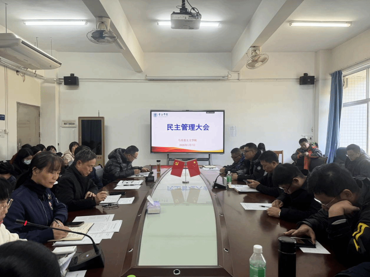 本网讯 1月7日下午,马克思主义学院于317会议室召开2025年度教职工民主管理大会暨述职述责述廉会。学院领导班子及全体教职工参会,学校党政办副主任廖勇到会指导。