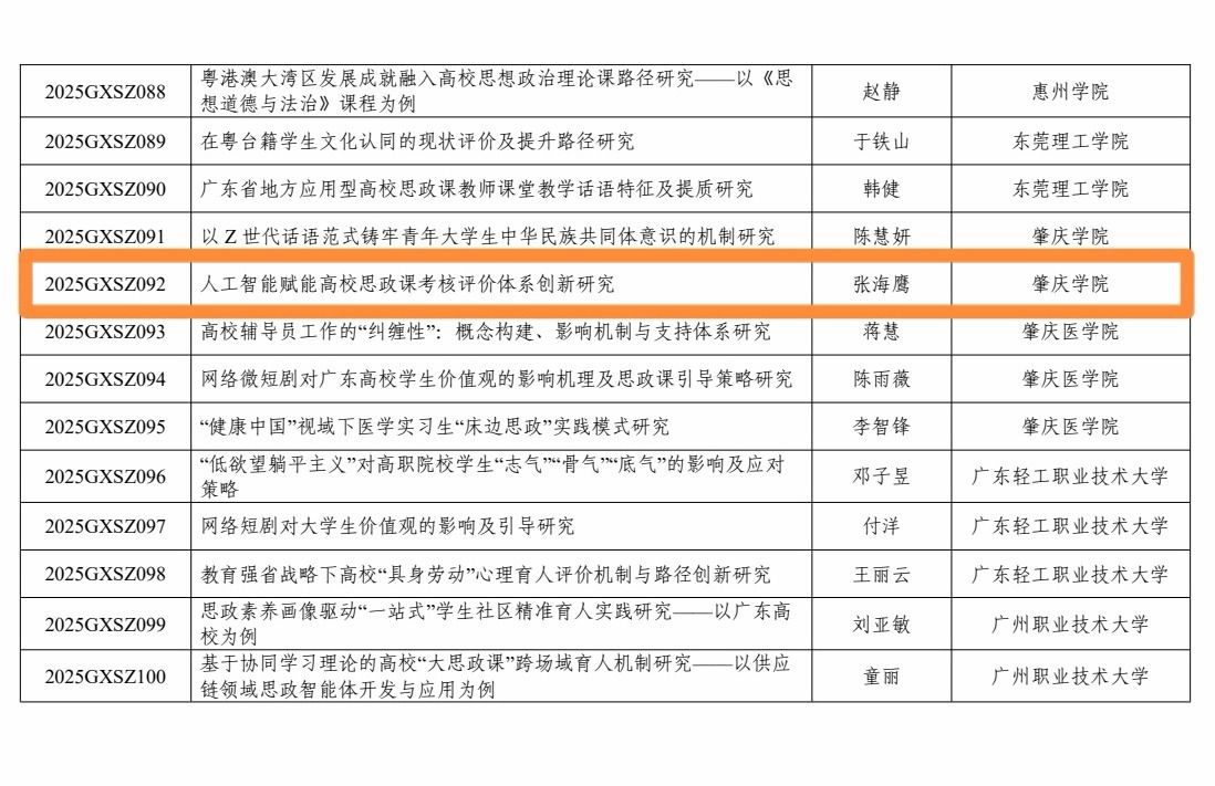 我院三位教师在省级思政与德育相关项目中获中斩获佳绩,充分彰显了他们深耕专业、笃行科研的扎实功底,久久为功、立德树人、服务育人的担当,是学院教师队伍中践行思政教育使命的优秀代表。
