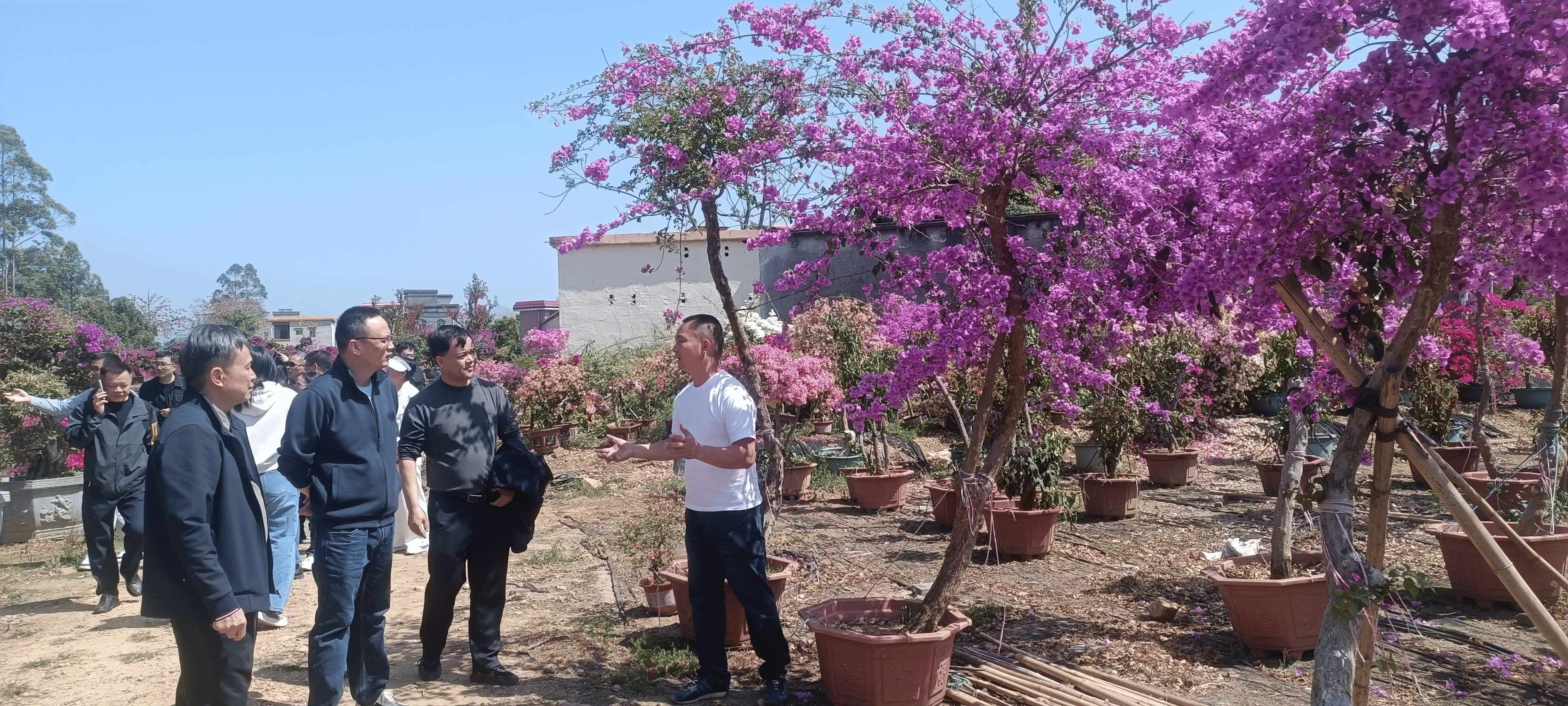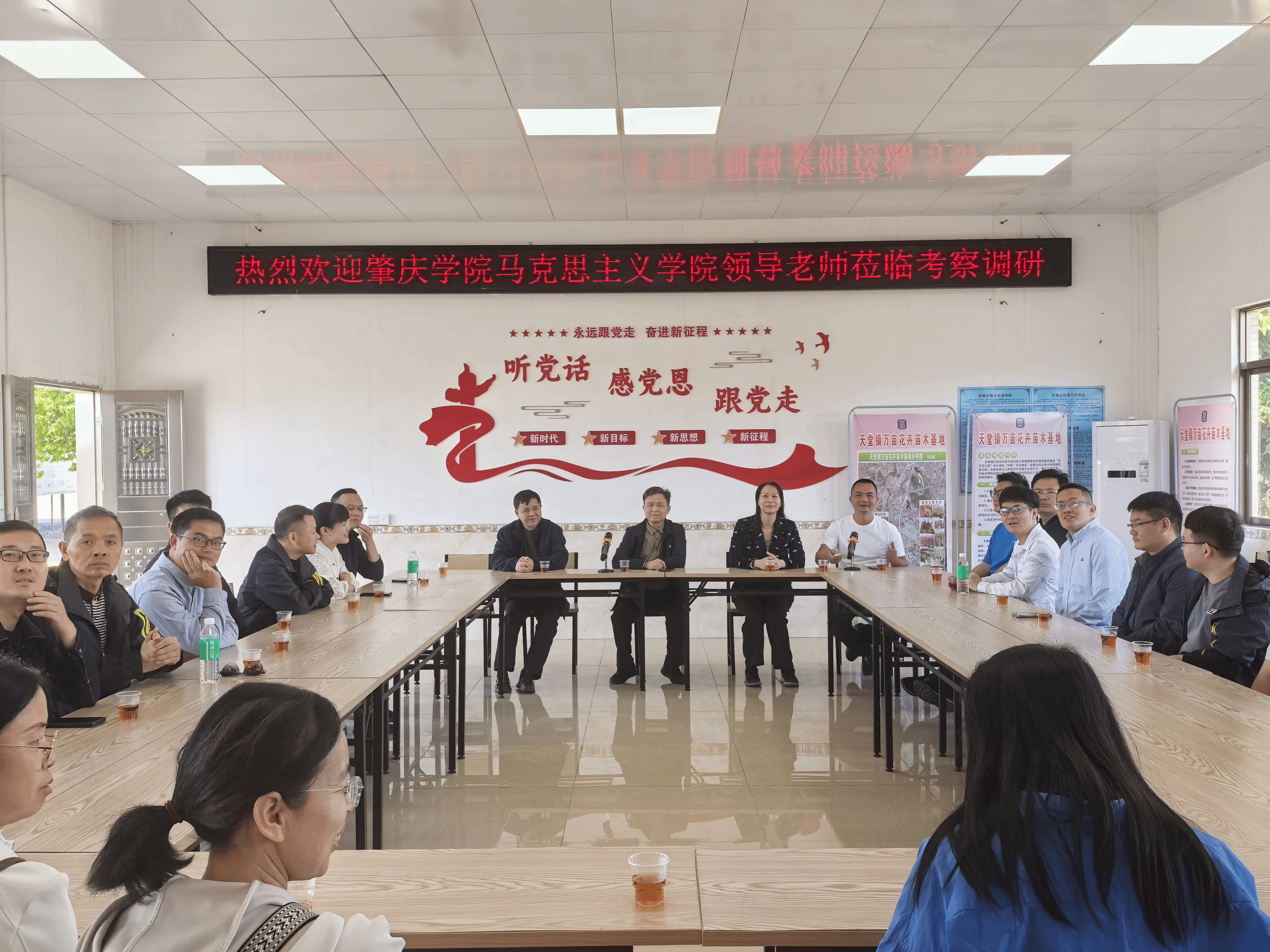 考察团深入花卉种植示范园区、青年创业基地和三角梅科研基地等现场,实地了解天堂镇龙坪村“百县千镇万村高质量发展工程”情况,以及当地现代农业种植技术创新、产业融合发展、乡村振兴实践成果等情况,与当地负责人、企业代表开展座谈交流,围绕思政课实践教学基地共建、校地思政育人协同、毕业生就业岗位拓展等核心议题深入探讨,达成多项初步合作共识。
